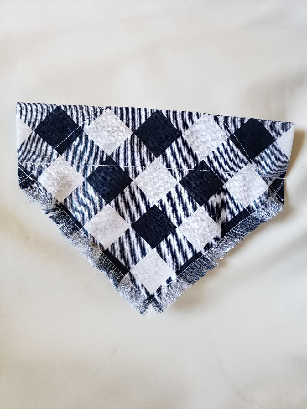 Over the collar bandanas are no hassle to put on as long as you have a collar! They have the look of a traditional tie bandana, but the are simple to put on. They are durable and easy to clean.